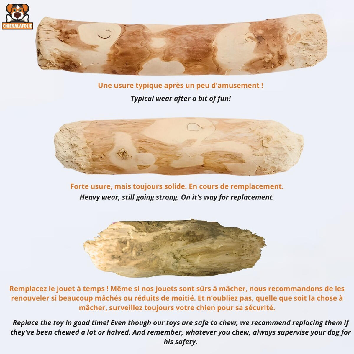* Usure : Ce sont des produits consommables destinés à être détruits lentement. L'usure normale ou la destruction par le chien ne constitue pas un défaut de fabrication.