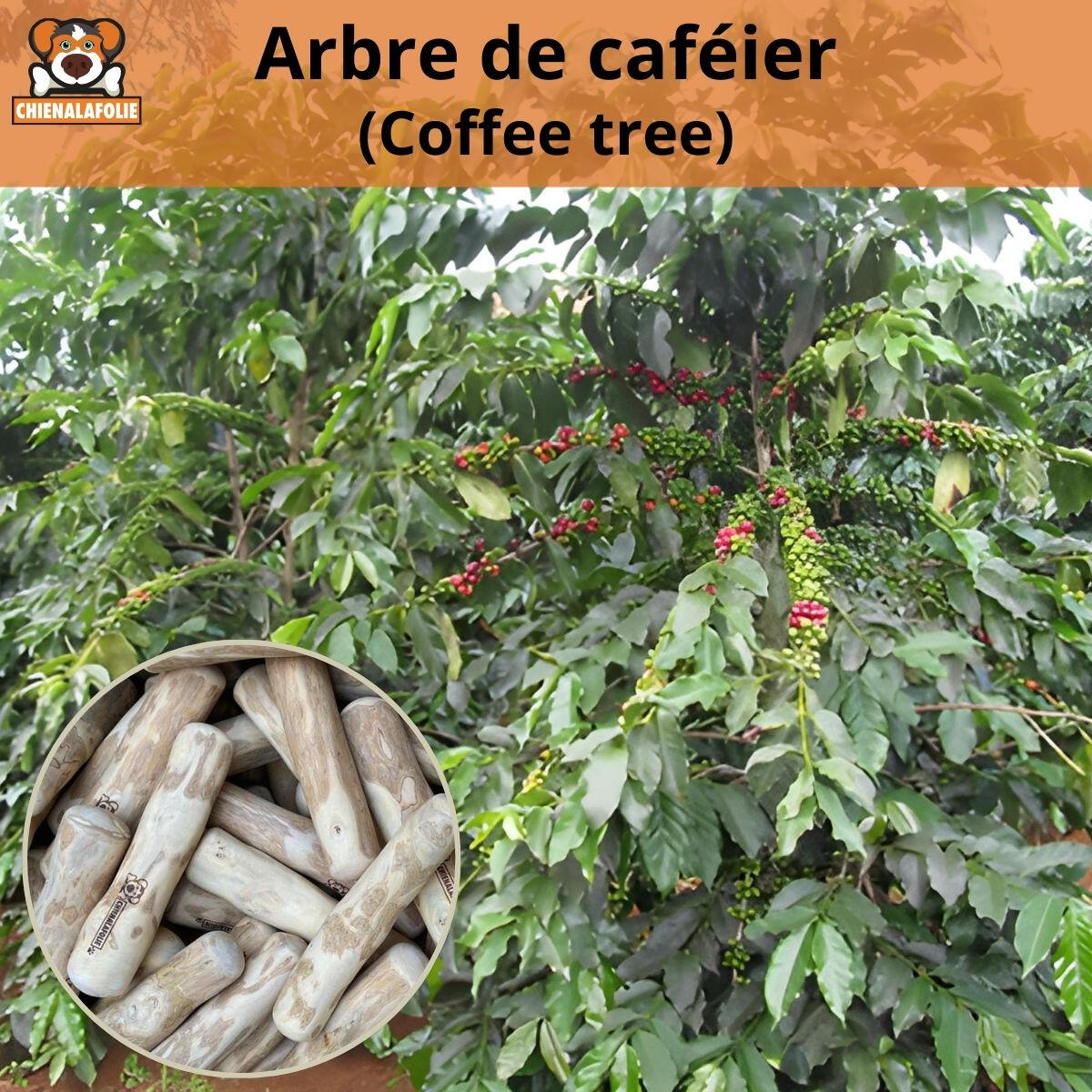 LE BOIS DE CAFÉ : L'EXPERT DES MÂCHEURSVotre chien détruit ses jouets en 5 minutes ? Passez au niveau supérieur. Contrairement aux bâtons trouvés dehors qui créent des échardes dangereuses, le bois de café est dense, durable et sécuritaire.🛡️ Sécurité Totale : Ne casse pas en morceaux pointus. Il s'effrite en petites fibres douces et digestibles.🦷 Hygiène Dentaire : Les fibres agissent comme une soie dentaire naturelle, nettoyant les dents mécaniquement.🧠 Anti-Stress Puissant : 15 minutes de mastication dépensent autant d'énergie qu'une heure de marche. Libère de la dopamine (hormone du bonheur).🌿 100% Naturel & Vegan : Récolté éthiquement. Sans caféine, sans calories, sans produits chimiques.